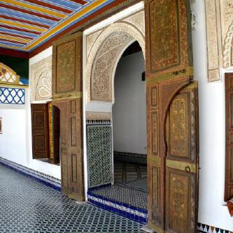 Der Bahia Palast, einer der beeindruckendsten von Marrakech, befindet sich in der Medina (Altstadt) der Stadt, neben der Nordseite der einstigen Mellah (Judenviertel). Obwohl das genaue Baudatum unbekannt ist (einige Quellen nennen 1866 - 1867), weiß man, dass der marokkanische Architekt El Mekki zwischen 1859 und 1873 eingesetzt wurde, den Palast für Si Musa zu errichten. Der Bauherr war ein ehemaliger Sklave, der zum Oberkämmerer des Alawidensultans Mulai al-Hassan I. (1873 – 1894) aufstieg und später Großwesir wurde. Der Sohn Musa Si Ahmed ben Musa (1841 - 1900) beauftragte den Architekten Muhammad El Makki 1894, den Palast zu vergrößern und zusätzlich wurde ein Moschee-Komplex und ein Hammam (Badehaus) errichtet und ein Gemüsegarten angelegt.