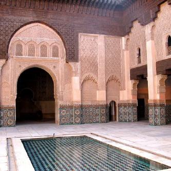 Die Ben Youssef Medersa war einst eine berühmte islamische Schule in Marrakech. Sie wurde nach dem aus der Almoraviden-Dynastie stammenden Sultan Ali ibn Yusuf (Regierungszeit: 1106 - 1142) benannt, der die Stadt und ihren Einfluss erheblich erweiterte. Es ist die größte Medersa in ganz Marokko. Die Schule wurde während der Zeit der Mariniden-Dynastie (14. Jahrhundert) von Sultan Abu al-Hassan in unmittelbarer Nachbarschaft zur Moschee Ben Youssef gegründet. Das Gebäude der Koranschule wurde dann während der Herrschaft der Saadier von Sultan Abdallah al-Ghalib (1557 - 1574) wieder aufgebaut. 1565 war die Wiedererrichtung des Gebäudes abgeschlossen, was eine Inschrift im Gebetsraum bestätigt. Um den Innenhof der Medersa gruppieren sich 130 Wohnzellen für Studenten.