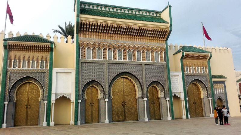 Zu den Sehenswürdigkeiten von Fès zählt u.a. auch der Königspalast von Fès („Dar El Makhzen“). Fès ist ja bekanntlich auch eine der vier Königsstädte von Marokko, sogar die älteste. Mindestens einmal im Jahr ist der König hier zu Besuch und nur er und seine Wächter und Bediensteten haben Zugang zum Palastinneren und zu den schönen Gärten. Natürlich möchten viele wissen, wie er von innen aussieht, aber leider ist der Zugang wie bei allen anderen Königspalästen in Marokko, nicht möglich. Wahrscheinlich teils aus Sicherheitsgründen und auch aus Gründen der Hofetikette. So bleibt der Palast - die Sommerresidenz von König Mohamed VI. - ein Geheimnis. Vorsicht bei Fotoaufnahmen: Man darf zwar den Palast von außen fotografieren- nicht jedoch die Wachleute vor den Eingängen oder auf dem Platz vor der Residenz!